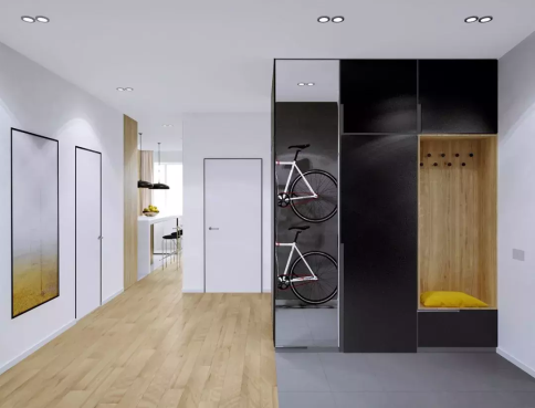 帶有衣帽柜、儲物柜等擁有貯藏性能的空間,是隱形門最常顯現的地區。將它們和門的色彩融為一體,在空間視覺上,起到了較好的協作成效。