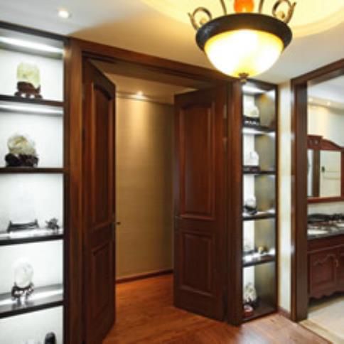 實(shí)木復(fù)合門:門芯和內(nèi)部構(gòu)造是由其余木料或密度板制成,唯獨(dú)外表是低檔木料并噴涂油漆。通常為三層復(fù)合構(gòu)造:門中心骨架(基材)為集成材(通常為松木或杉木);門芯骨架為實(shí)木網(wǎng)格或密度板網(wǎng)格,雙方貼中密度板;外表貼低檔實(shí)木木皮(如黑胡桃、紅櫻桃、花梨、柚木、沙比利等)。門的外表通常用的是聚酯漆。
