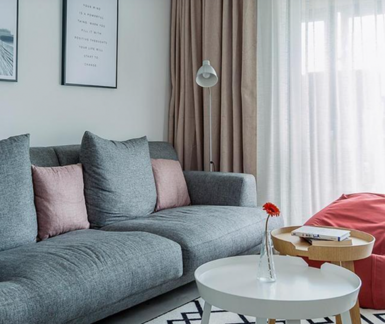 搭配了灰色沙發(fā),坐著很舒服。中間布置茶幾為圓形組合式,一個白色一個原木色,而且加上了地毯,增加了視覺感,更顯得有檔次。家里如果需要地毯的話,還是很值得擁有的!
