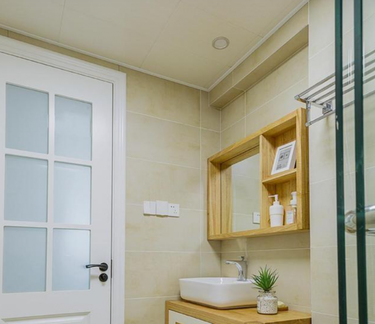 這是公衛(wèi),空間合適做了干濕分離,主要是洗澡的時候不會把整個空間給弄濕了,做保潔會方便很多。并且搭配的浴室柜,顯得很個性,而且臺上盆,顏值很高呢!