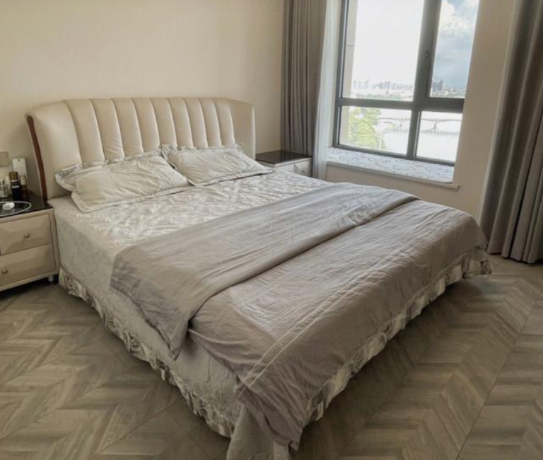 主臥空間還是比較寬敞的,而且床的款式也比較讓人喜歡,搭配的床上用品,看著簡(jiǎn)單,但是很精致呀。飄窗沒辦法打掉,可以當(dāng)小沙發(fā)使用,坐著玩手機(jī),也覺得很舒服呢。全屋安裝了中央空調(diào),頂面吊頂是不可缺少的一部分。