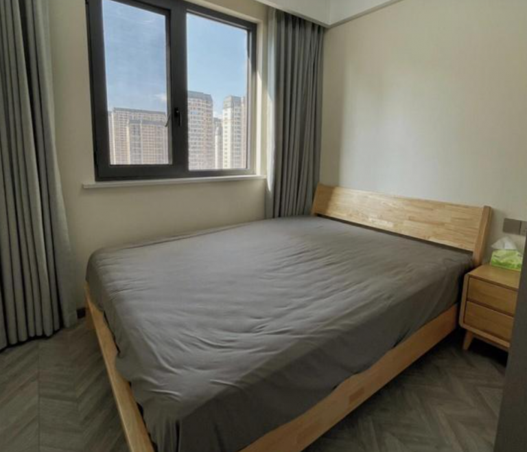 次臥空間不大,一張?jiān)?.5米的床加上一個(gè)床頭柜和衣柜,基本沒有什么多余的空間了。對(duì)于臥室來說,非常常見了。地面鋪貼的木地板,顯得很有檔次,效果真心不錯(cuò)。沒有瓷磚那種冷冰冰的感覺,更舒服。