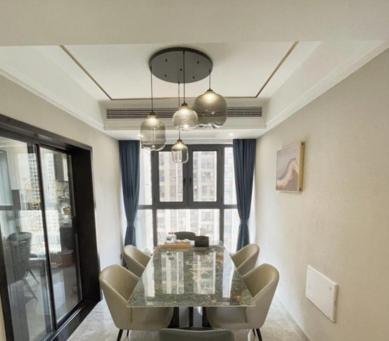 這是餐廳,布置了一張方形巖板餐桌,占用的空間大小位置合適,一家人開開心心坐在一起用餐,真的很幸福了。空間不大,但是看著這個(gè)角度,跟我們常見的樣板房一樣,顏值很高,也很時(shí)尚。餐廳大大的落地窗,采光非常充足,光線很好。而且旁邊就是廚房了,煮好的飯菜可以很快端出來,方便用餐!