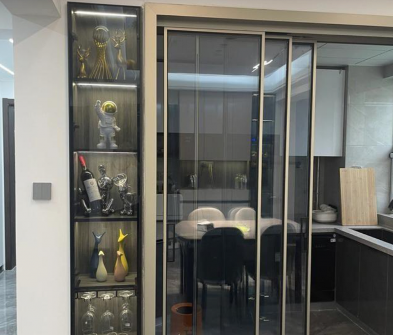 辛辛苦苦換來的房子,利用廚房門左側的位置,設計了小酒柜,可以增加一些儲物空間,更為合理把空間利用起來,顯得很有設計感??梢钥吹?,不管是酒還是一些小擺件,都可以方便收納起來,可以起到一定的裝飾效果!