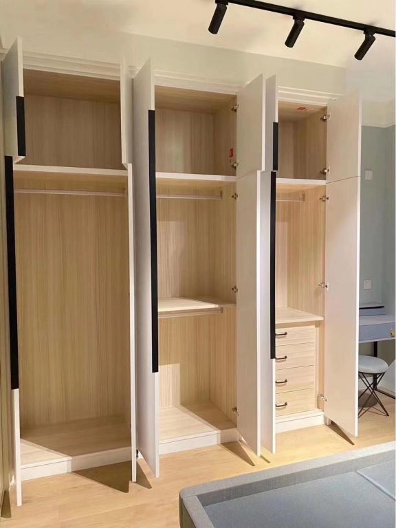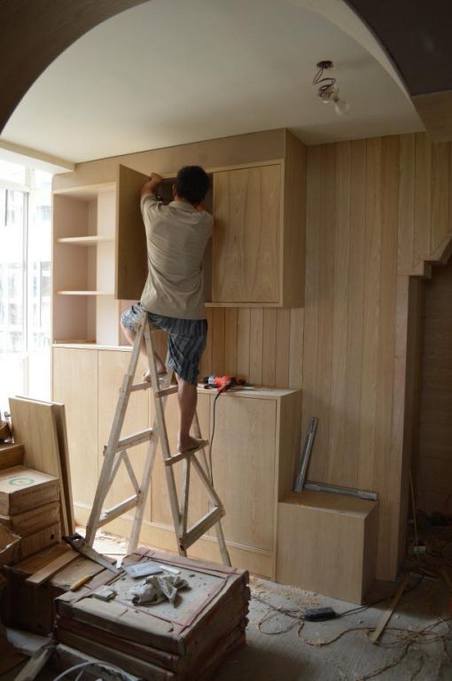 而木工打柜子,直接減少了眾多繁瑣的步驟,只需要自己購買板材和輔材,讓木工在家里現(xiàn)場打即可,用時大概十天左右。
