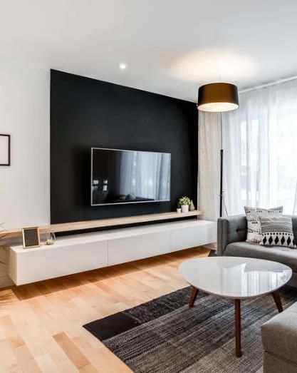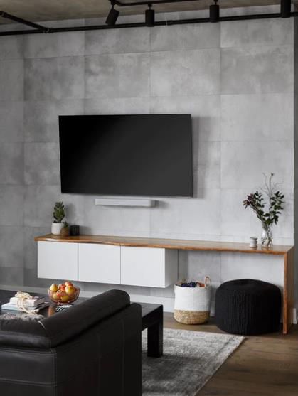 雖然大理石在過(guò)去幾年里有過(guò)“時(shí)刻”,但它的永恒性是不可否認(rèn)的,木質(zhì)裝飾也是如此。如果處理得當(dāng),大理石和木頭的組合可以為您的電視打造簡(jiǎn)約的背景,但絕不乏味或陳詞濫調(diào)。白色大理石吸引眼球,而木板條則打破了它的亮度,為空間增添了一絲溫暖。這兩種材料的結(jié)合使您的電視在視覺(jué)上看起來(lái)像是空間的互補(bǔ)部分,而不是漫無(wú)目的地坐在房間中間的一個(gè)黑暗、單調(diào)的正方形。