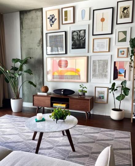 它本身不是口音墻,但至少值得一提。裱框藝術(shù)印刷品,在電視周圍創(chuàng)建了這個(gè)畫廊墻,這基本上與藝術(shù)沒(méi)有區(qū)別。絕對(duì)不像我們看過(guò)的其他款式那樣簡(jiǎn)約,但如果你想要更折衷一點(diǎn)的東西,它仍然很漂亮。