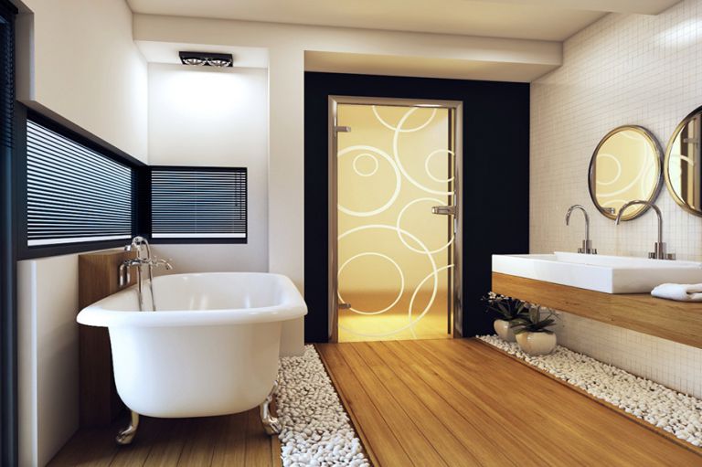 浴室中的磨砂玻璃門正變得越來越流行和需求。它們是任何室內設計的亮點。